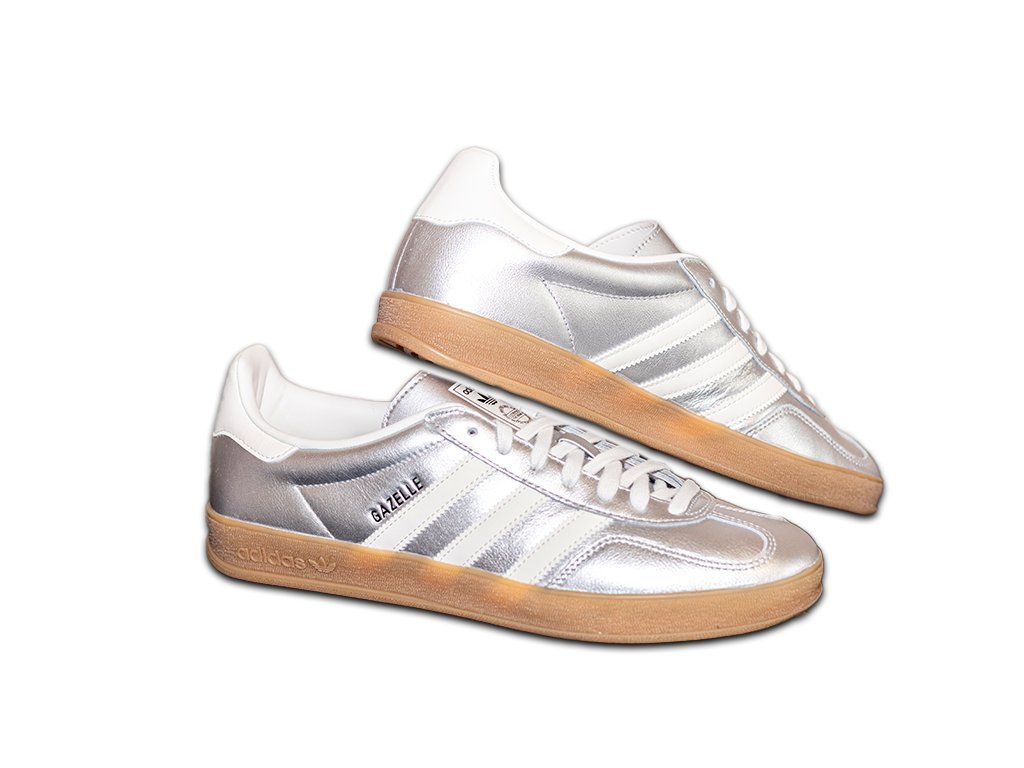 Adidas Gazelle Indoor Silver Metallic Core White, tenisky které byly uvedeny na trh v roce 1971 a původně sloužily jako tréninková obuv, dnes jsou nadčasovým a stylovým kouskem na každodenní nošení. Stříbrný metalický svršek doplní každý outfit.