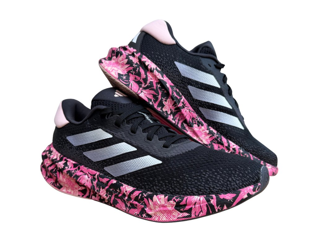 dámské běžecké tenisky, které jsou nejen originální ale také neskutečně komfortní. Mají měkké tlumení, prodyšný svršek a díky tomu jsou vhodné především na běh a aktivní životní styl. Elegantní černou barvu doplňují růžové květy na podrážce, které dodají botám ženský šmrnc. Radost v pohybu v každém kroku.