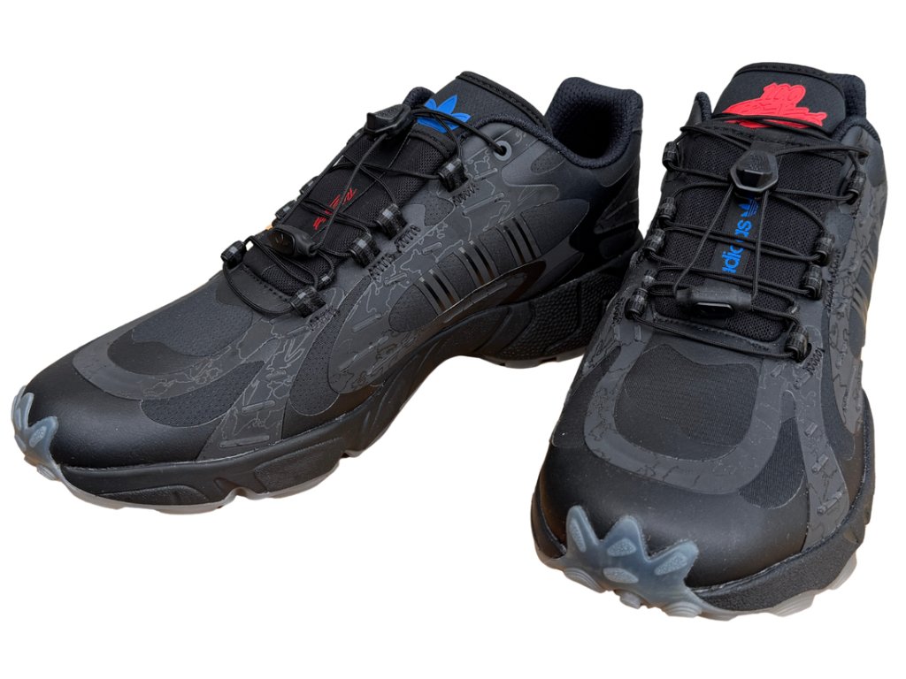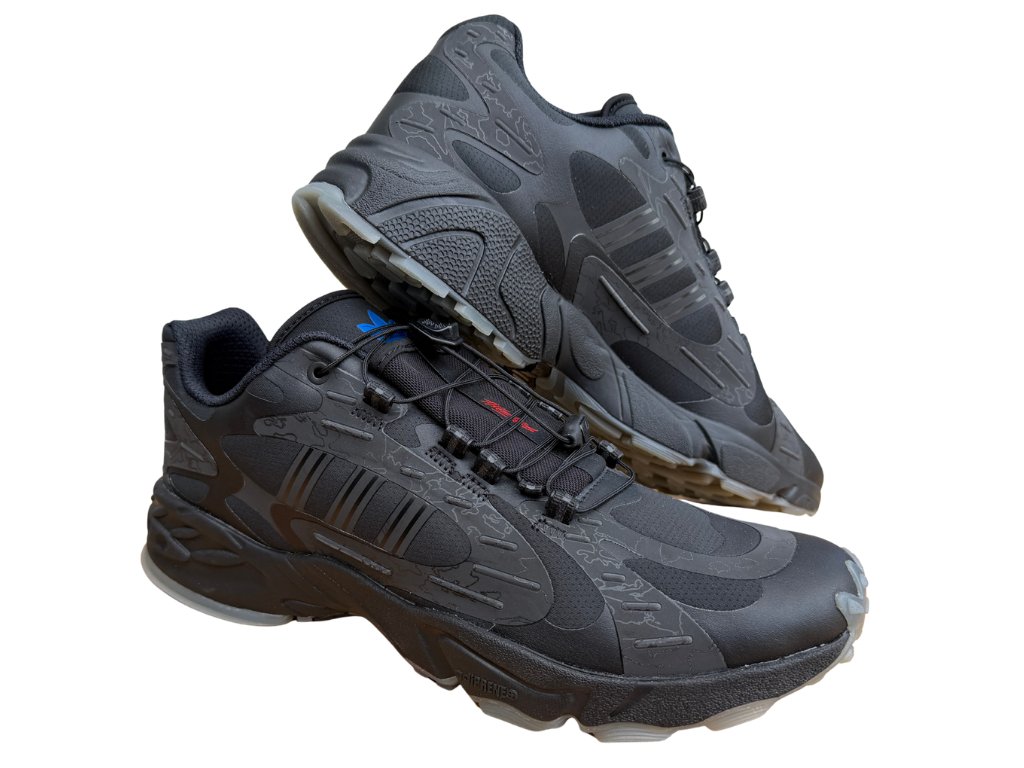 tenisky, které jsou inspirované outdoorovými modely vyrobené ve spolupráci s dravou energií 100 Thieves. Jeden z nejnovějších modelů adidas roku 2025 má moderní siluetu, výrazné reflexní detaily s maskovacím potiskem a reflexní tři pruhy. Materiály jsou prémiové, funkční a systém rychlošněrování dělá z boty originální outdoor kousek. Elegatní černé provedení skvěle padne k outdoor outfitu, ale klidně i do města či na procházky.