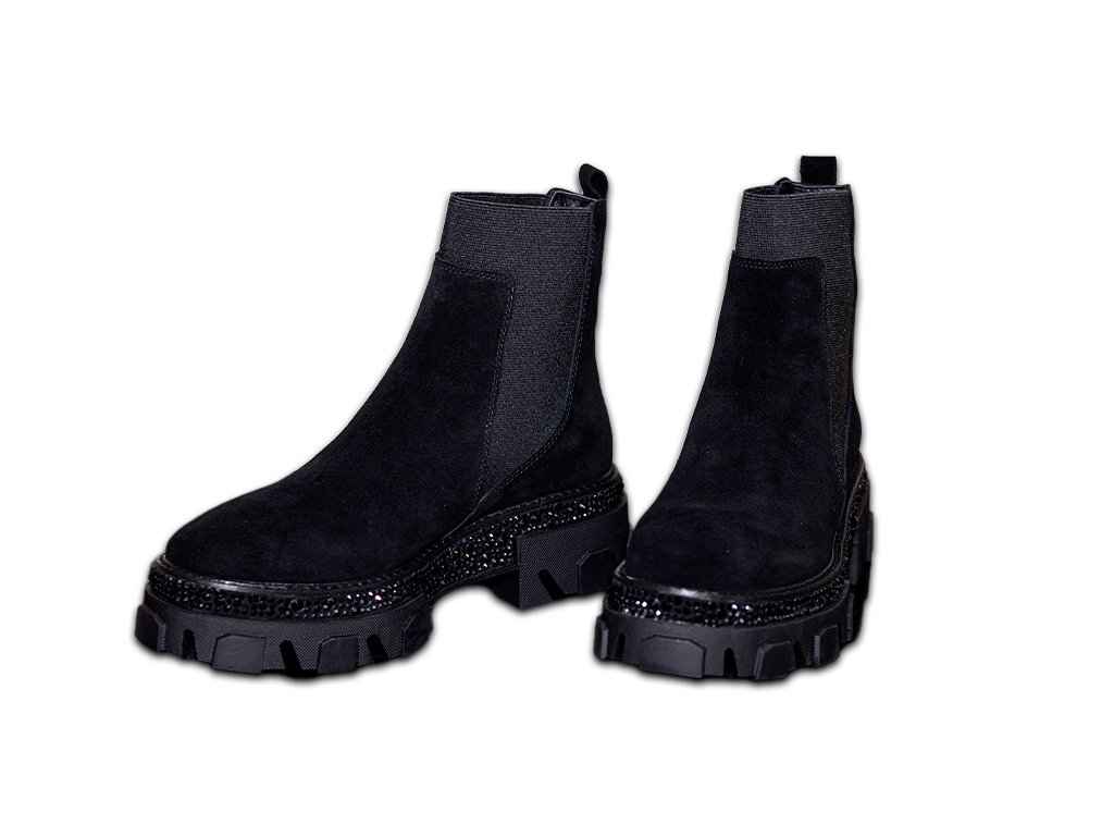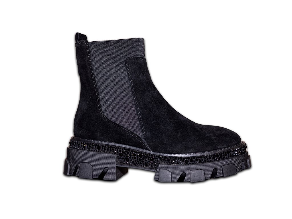 Alma En Pena Track CON PEDRERIA černé kotníkové kozačky, které jsou ozdobené jemnými třpytivými kamínky. Určené pro ženy, které se nebojí zazářit a zaujmout. Kombinace nadčasového designu, elegance pohodlí. Módní vzhled, který se hodí jak k džínám tak i k šatům do práce i na párty.