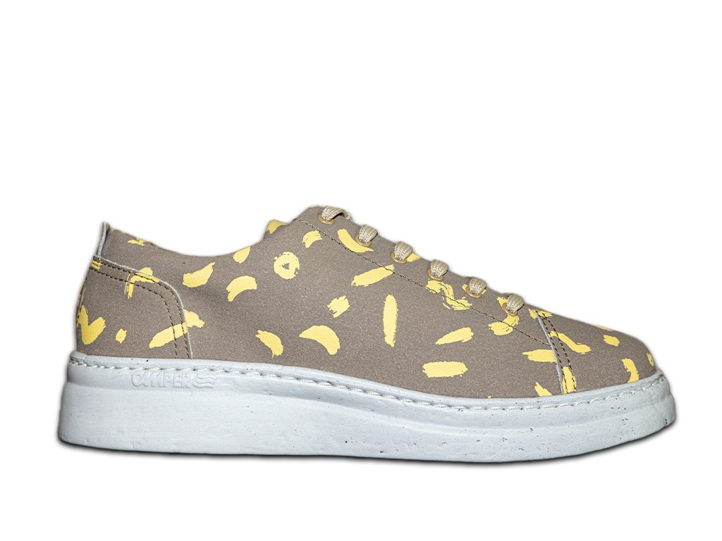 Hravé tenisky s ikonickým retro vzhledem značky Camper. Jsi energická a nebojíš se výzev? Camperky Citrino ti zpestří každý tvůj den a budeš se cítit za všech okolností pohodlně a osobitě. Kombinace zářivých barev v odstínu žluté vytváří jedinečný charakter. Svršek je vyrobený z prémiové kůže a textilu, který se skvěle přizpůsobí noze a měkká vnitřní podšívka poskytuje příjemný došlap. Gumová podrážka s vyvýšením je ideální pro ty z vás, které chtějí být o kousek vyšší. Oživ svůj outfit barvami.