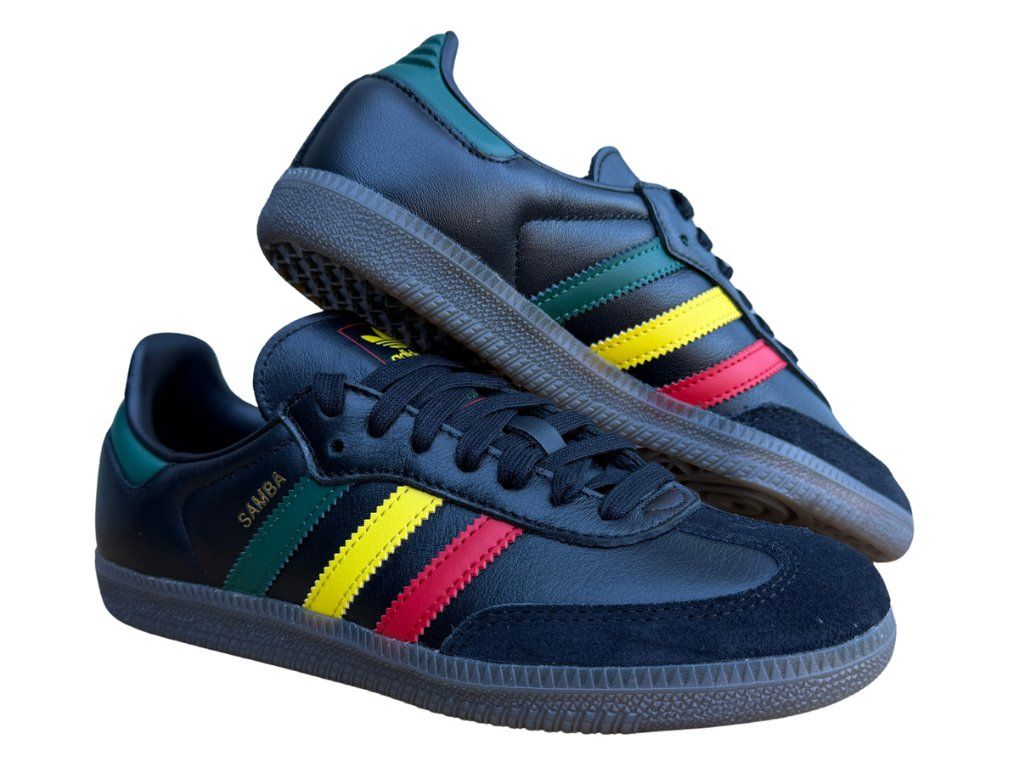 Ikonické tenisky adidas Samba tentokrát v černém provedení s rasta detaily, tedy žluté, červené a zelené pruhy. Retro design, který se v tomto modelu spojuje s moderním streetwearem. Ideální pro všechny, kteří se nebojí být originální.