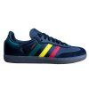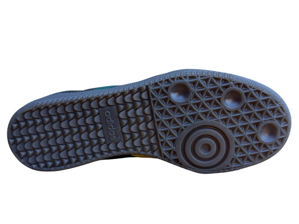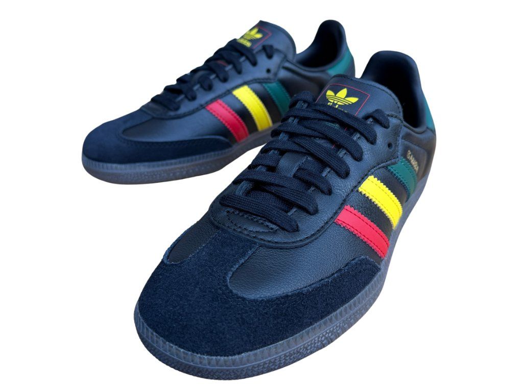 Přemýšlíš jak oživit svůj outfit nebo jaké boty zvolit abys trošku vyčníval z davu? Pokud ano, tak tyhle Samby si musíš pořídit. Elegantní černá ve spojení rasta barev - zelená, žlutá a červená jsou nadčasovým kouskem, který spojuje jak klasiku tak moderní street styl. Vrchní část tenisky je vyrobena z kvalitní kůže a semišové detaily dodají autentický vzhled. Stabilitu a pohodlí při chůzi zajištuje gumová podrážka. Jelikož je barevná kombinace opravdu originální tak tyhle Samby nesmí chybět ve tvé sběratelské kolekci.