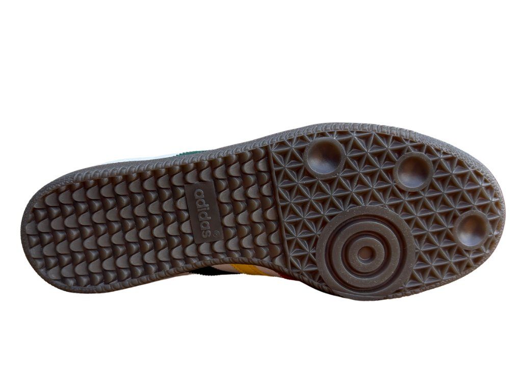U těchto tenisek dominuje bílá barva ve spojení jamajských barev, tzv. rasta stylu - zelená, červená a žlutá. Jsi milovníkem bílých bot, ale rád bys je nějak oživil? Pak tyhle Samby jsou jako dělané přímo pro tebe. Jedinečná edice, která propojuje nadčasový styl a karibskou energii. Kožený svršek je doplněný semišovými detaily a zajišťuje komfort a odolnost při nošení. Díky gumové podrážce budete cítit skvělou přilnavost a zároveň vás to stylem přenese do 50. let minulého století, kdy se Samby staly legendou v teniskách.