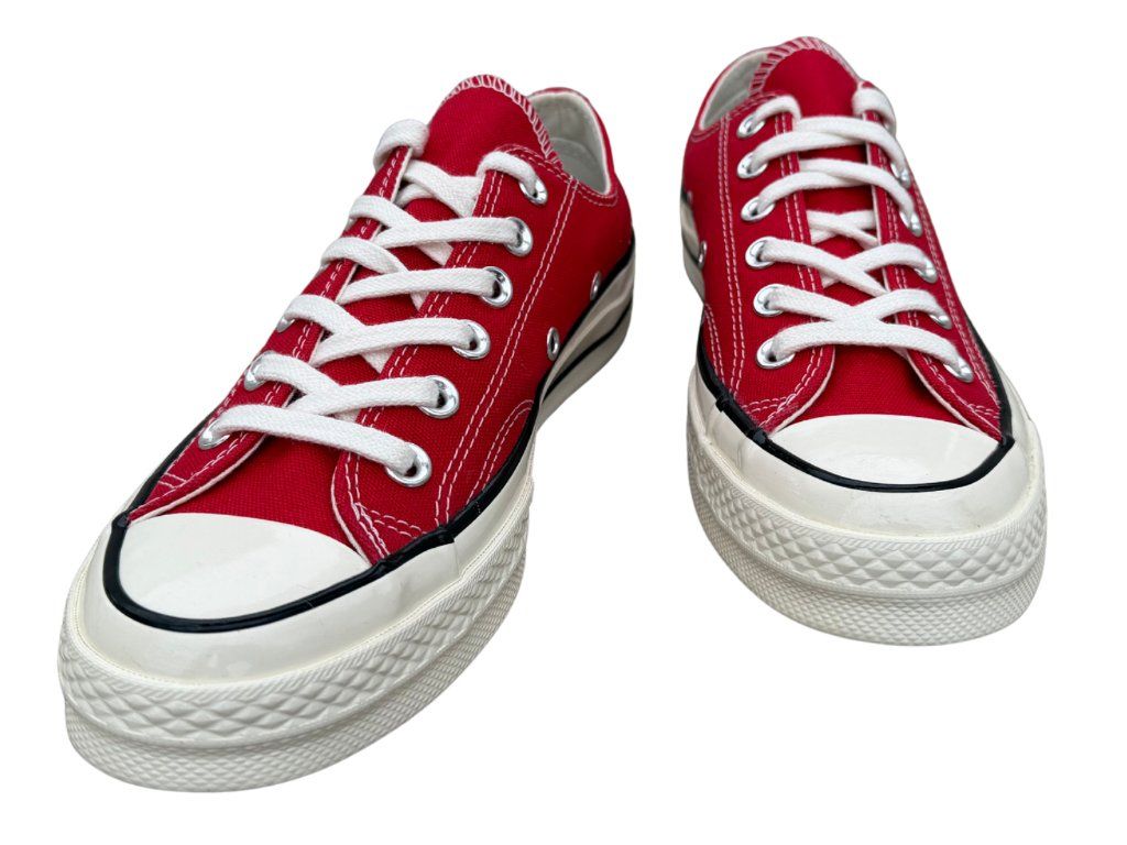 Retro vzhled a moderním komfort v jednom páru bot. Tenisky, které zná celý svět a jsou ikonou streetwearu již po desítky let. Conversky nevyjdou z módy, jsou módní statement. Svršek je vyrobený z lehkého canvas plátna, který je vhodný i do teplejšího počasí. Charakteristická gumová podrážka zaručuje stabilní krok a je odolná. Navíc model Chuck 70 Ox má tuto gumovou podrážku lesklou a jsou jiné než klasické conversky. Výrazná červená barva má energii a šmrnc a perfektně padne k různým druhům outfitů.