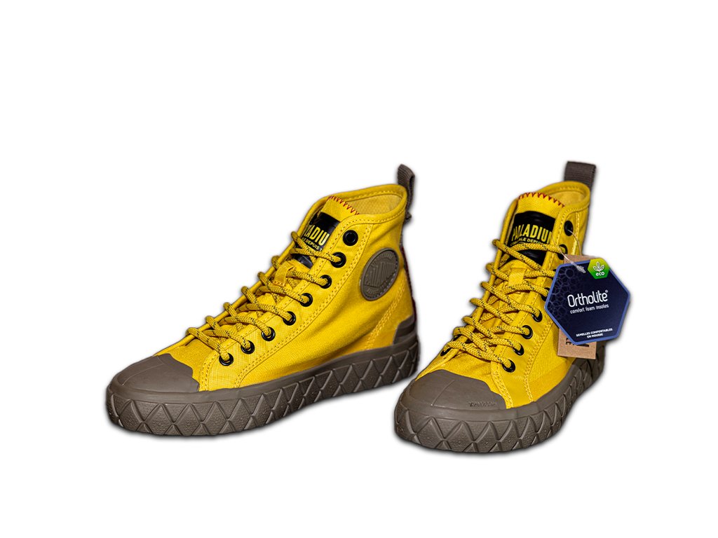 Chceš si pořídit tenisky, které můžeš vzít do města, ale i na lehké outdoor aktivity? Tyto kotníkové tenisky Palladium spojují přesně to, co očekáváš. Díky své zářivé žluté barvě tě nikdo nepřehlédne a vždy budeš středem pozornosti, ať už ve víru velkoměsta nebo v lese. Mají plátěný, odolný svršek s pevnou gumovou špičkou, která chrání nohu a zajistí tak botě dlouhou životnost. Textilní vložka a polstrovaný límec ti poskytne maximální komfort při celodenním nošení a robustní podrážka s výrazným vzorem poskytne tvé noze stabilitu i na méně zpevněných površích. Charakter značky Palladium je zde naplno patrný a když se ještě skloubí s originální žlutou barvou je na světě trendy kousek, který si stoprocentně zamiluješ.