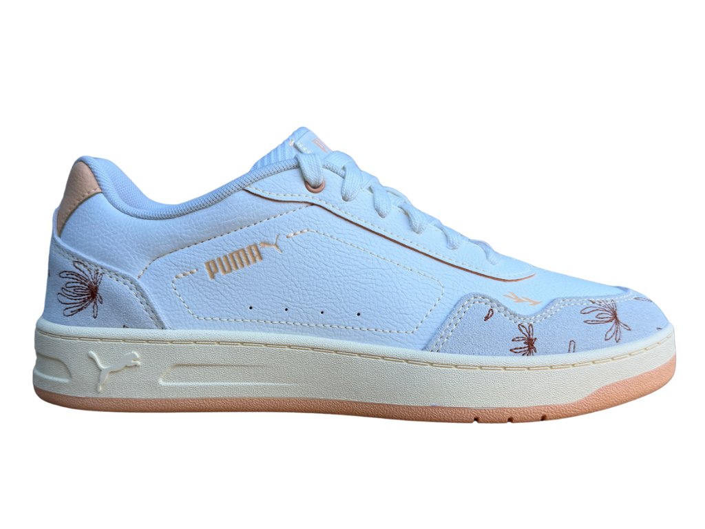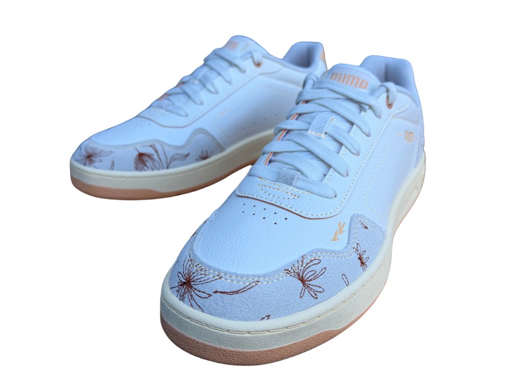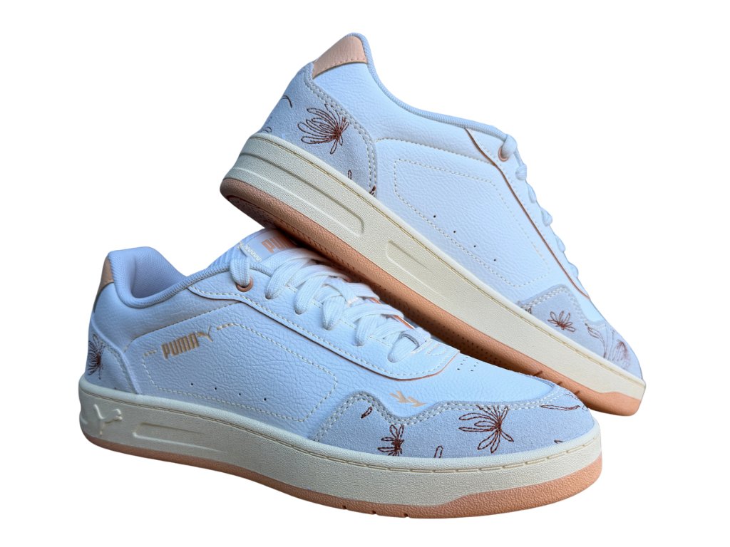 PUMA Court Classy Crafted Flowers tenisky které mají ženský a jemný nádech, spojují nadčasový sportovní design s ručně vyšívanými květinami. Skvělá volba pro všechny, které chtějí být v pohodlí a zároveň stylové.