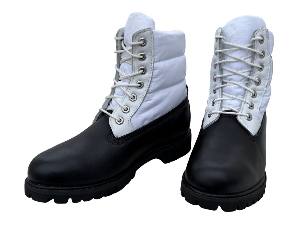 kotníkové boty, které jsou ikonou. Jsou nejen stylové a skvěle vypadají, jsou i odolné. Timberlandy, které se hodí do města i na sněhové radovánky. Svršek je vyrobený z prémiového černého nabuku (kůže). Ideální do chladných dnů, protože vaše nohy chrání před každým počasí. Odolná gumová podrážka je protiskluzová a pokud bude venku mrznout zajistí stabilní krok. Skvělá volba pro dobrodruhy i na klasické zimní pochůzky po městě. Černo-bílé barevné provedení je elegantní a bude se hodit k jakémukoliv outfitu.