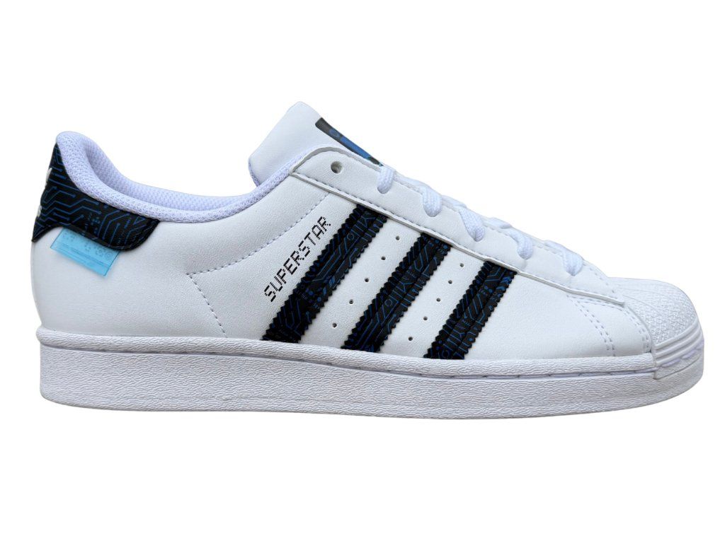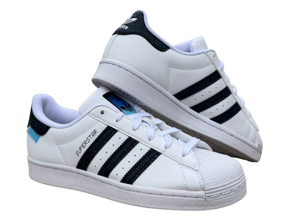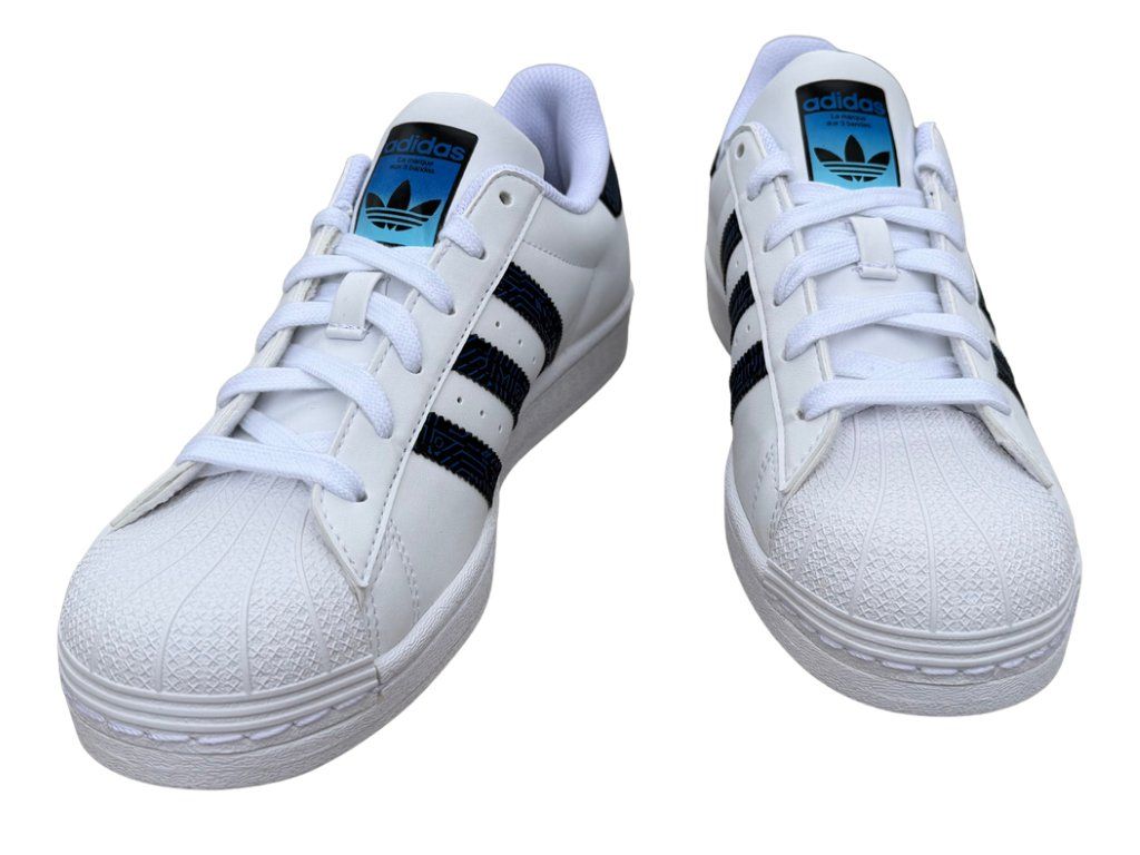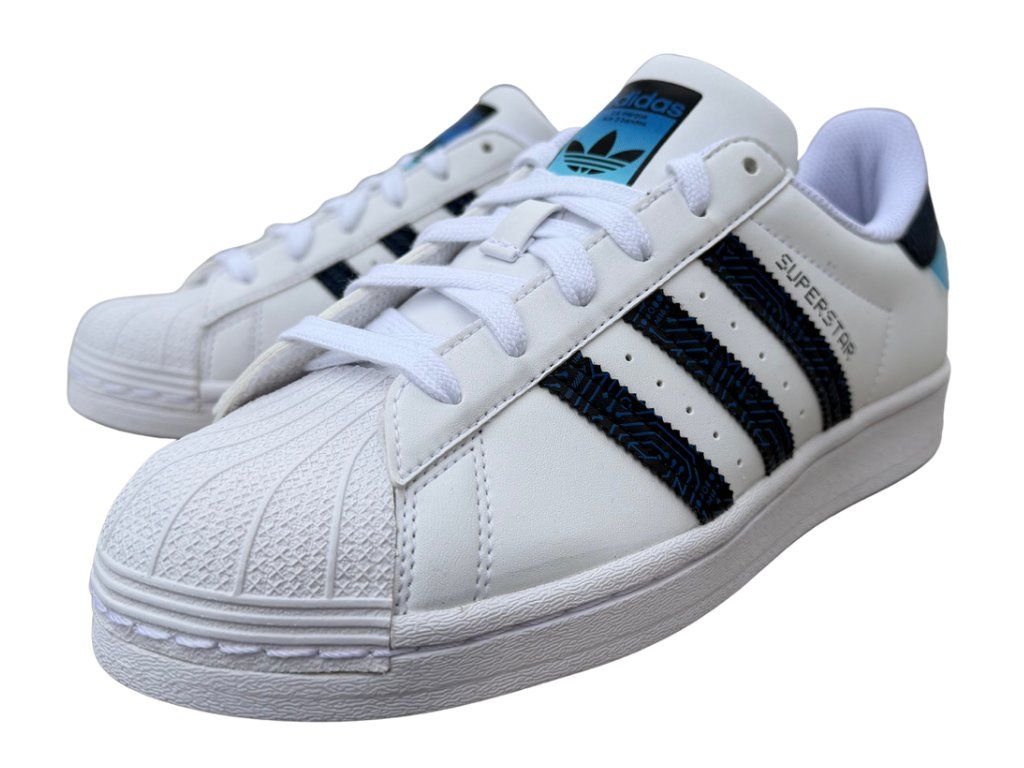 Legendární tenisky s moderním twistem. adidas Superstar je ikona! Luxusní bílý, kožený svršek s černými detaily a modrým odstínem loga na jazyku působí svěžím dojmem a energií. Gumová špička shell toe chrání prsty a díky ní je i bota odolnější. Perfektní kombinace nadčasového vzhledu a streetového stylu. Univerzální barevné provedení se bude hodit do práce i na nošení do školy. Šmrnc v každém kroku.