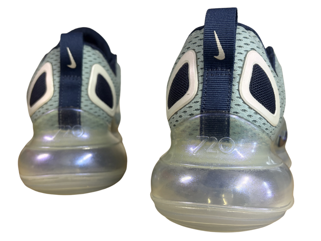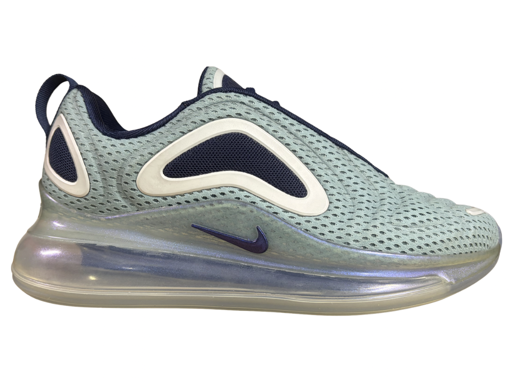 Svršek je vyrobený z kvalitního syntetického materiálu, který je prodyšný a v originální světle tyrkysové barvě neotřelý a cool. Wow a ta silueta. Působí dynamicky, futuristicky a přitom elegantně. To je kombinace, viď? Robustní podrážka s metalickými odlesky s technologií Air Max 720 poskytuje perfektní absorpci nárazů a pevný a jistý krok.